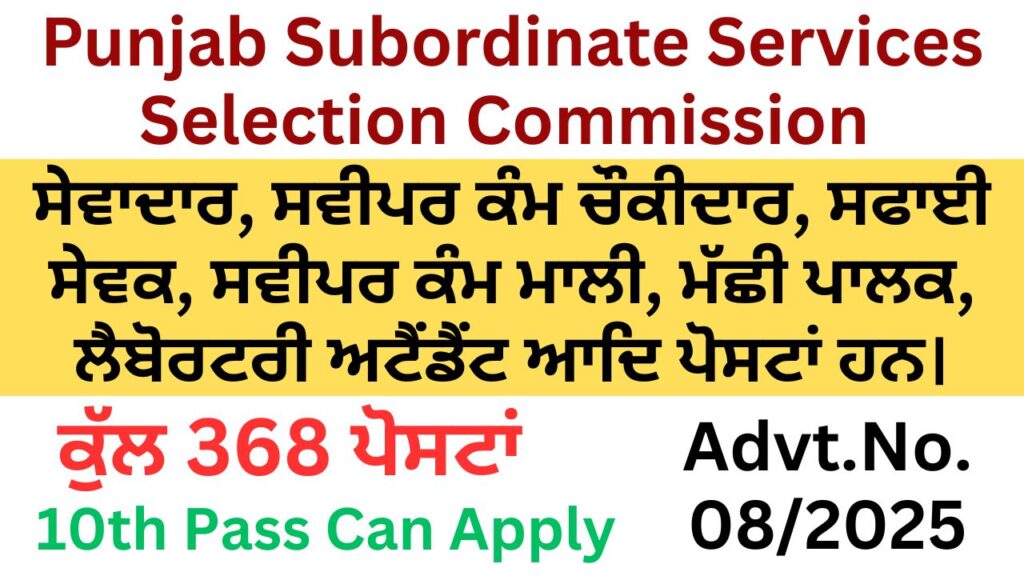 PSSSB Group D Recruitment 2025- Apply Online for 406 (Extended) Vacancies